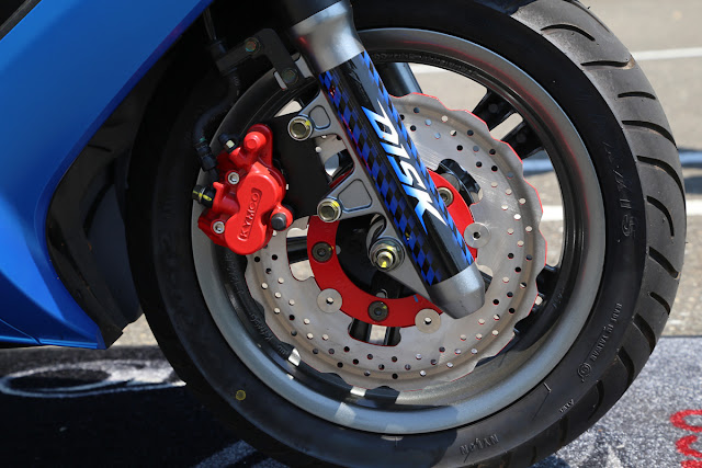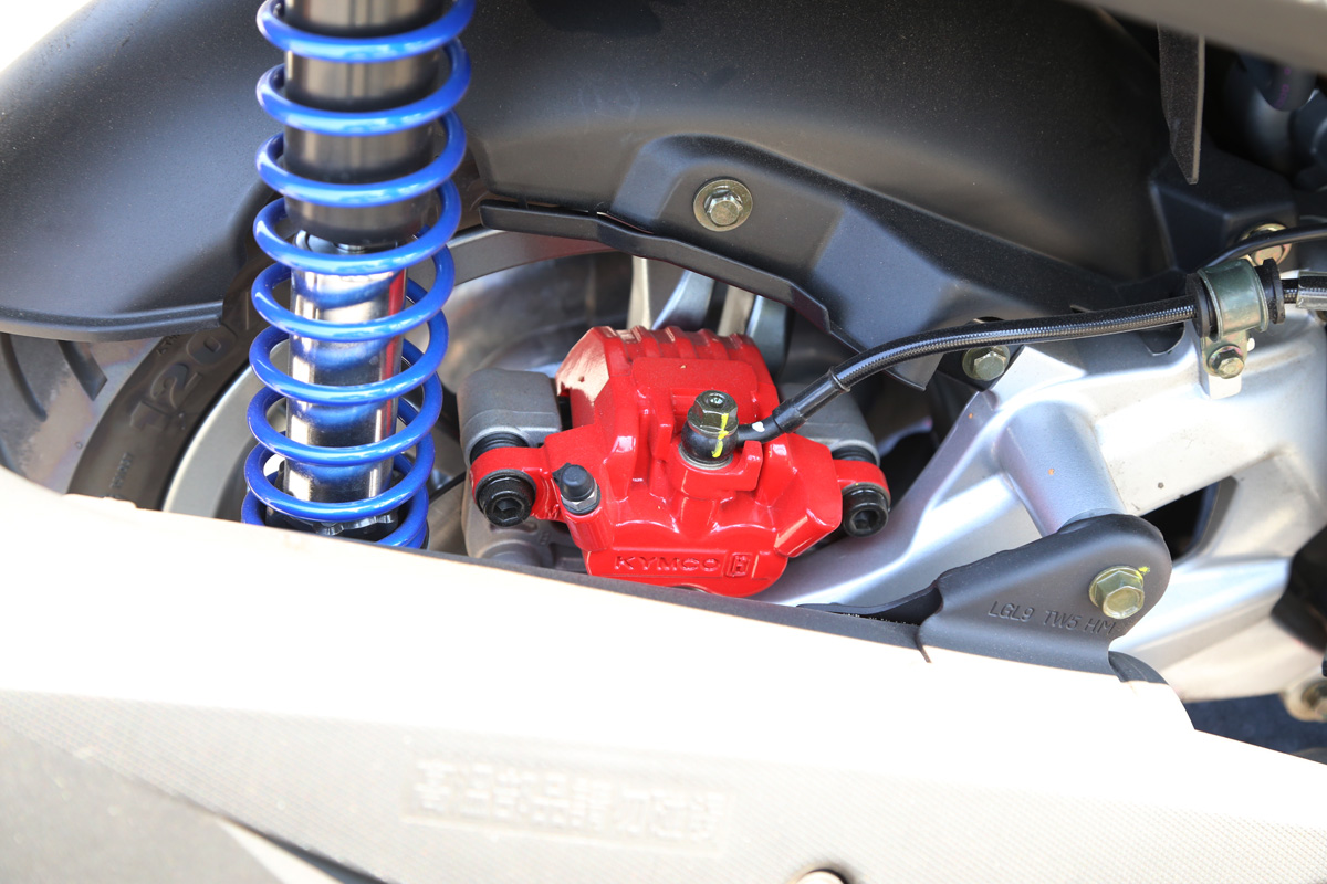 G6 150更將後碟煞列為標準配備,搭載直徑200mm DISK與雙活塞卡鉗(φ25.4 x2)下,將制動性能安全列為最高要求。