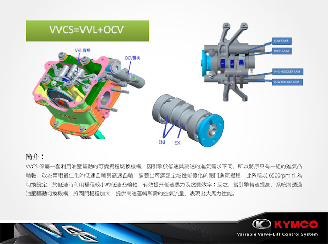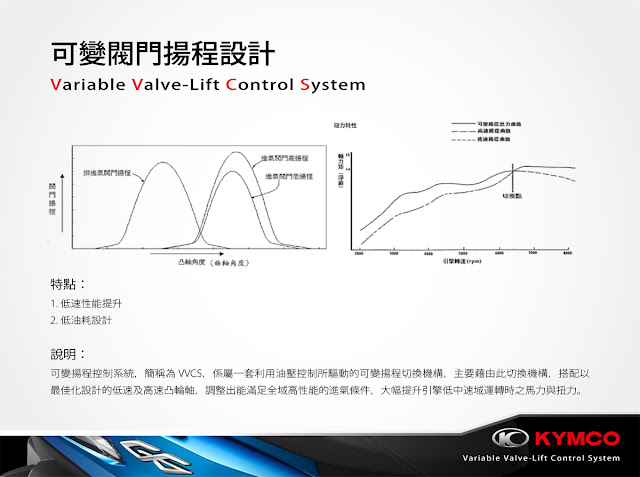 全新進化的主題是 超六 引擎採用了光陽研發最新科技VACS(Variable Air Control System)可變進氣系統,同時兼具為低速巡航提供最佳扭力與以及高速巡航時所需的引擎動能。